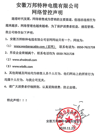 鄭重聲明:安徽萬邦特種電纜有限公司官方網站為:www_wanbangcable_com.fjsuvd.com.cn,除此之外無任何子網站或合作網站,其余均為假冒偽劣。電話:0550-7621728 13485756353 地 址:安徽省天長市滁州高新技術產業開發區經四路29號